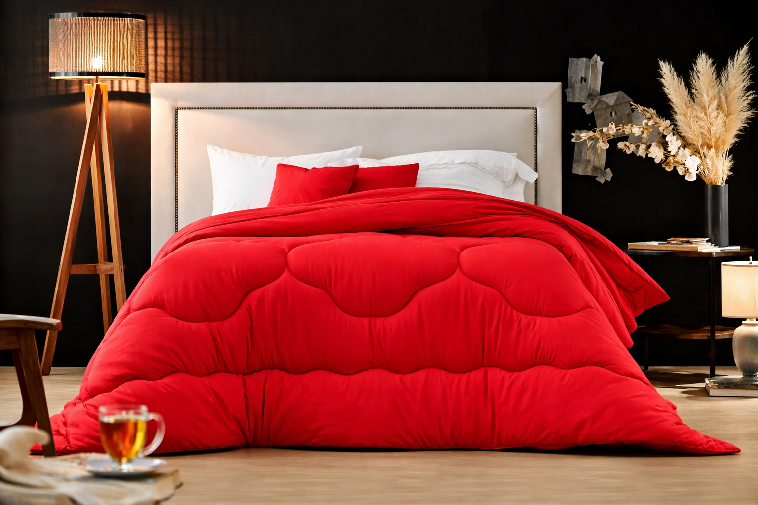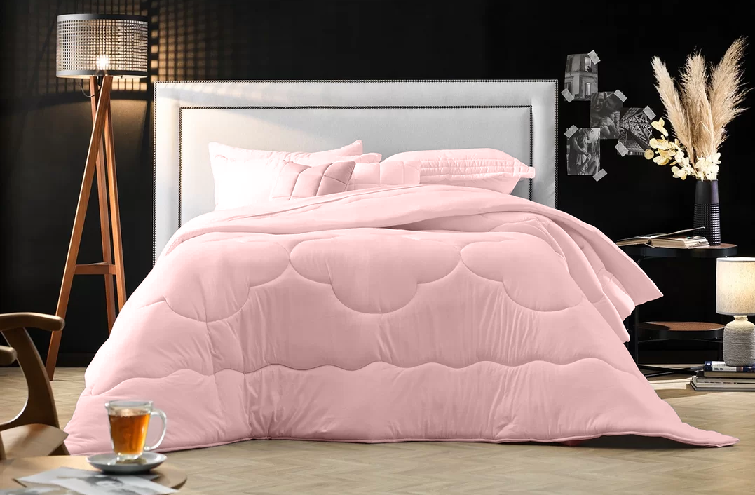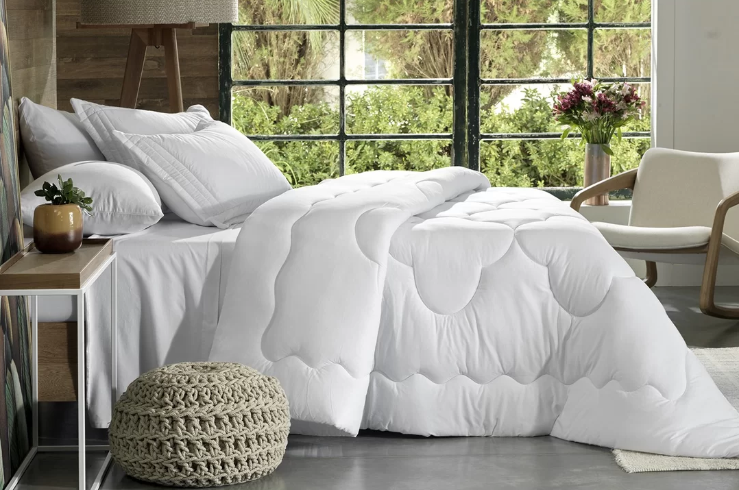 Nuestros edredones hechos en algodón pima con caída hacia al piso 45 cm