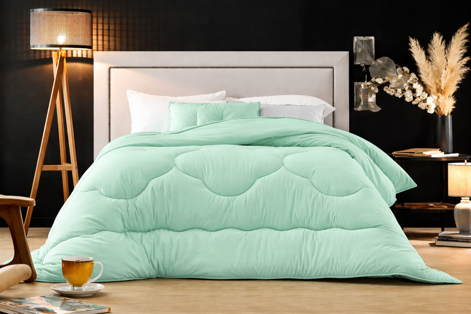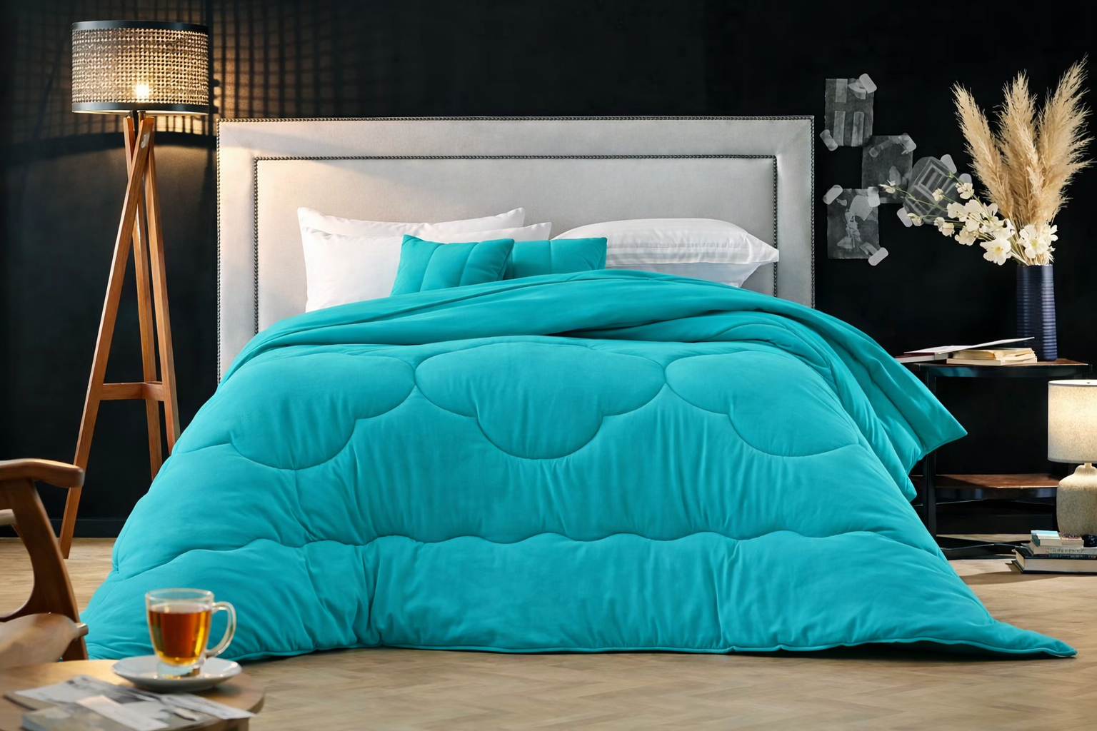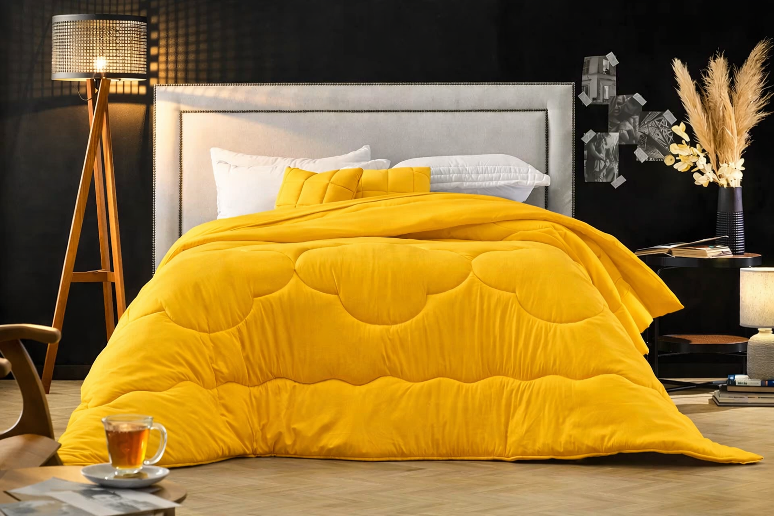 Nuestros edredones hechos en algodón pima con caída hacia al piso 45 cm