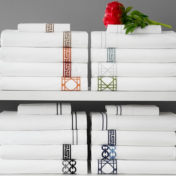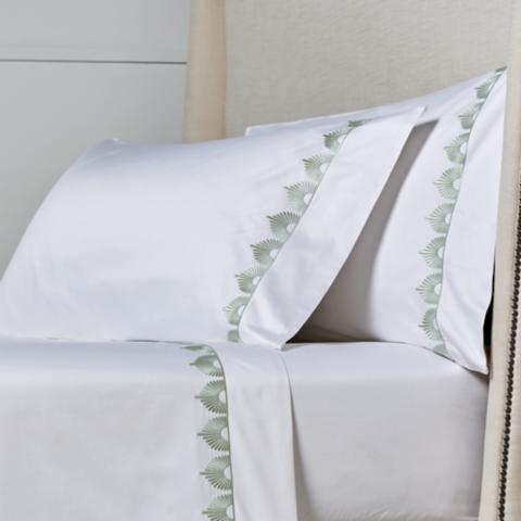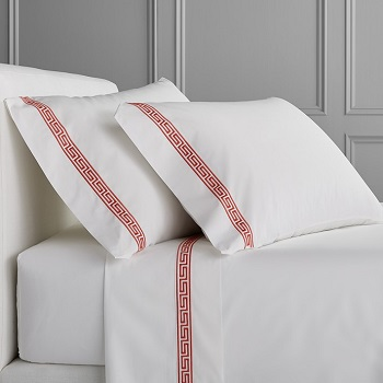 Las líneas atrevidas y limpias de un motivo clave griego le dan un estilo clásico a nuestras elegantes camas. Las costuras trazan el calado en percal de algodón pima 100% de 415 hilos. Este patrón distinguido bordea la sábana y enmarca la las fundas de almohadas.
